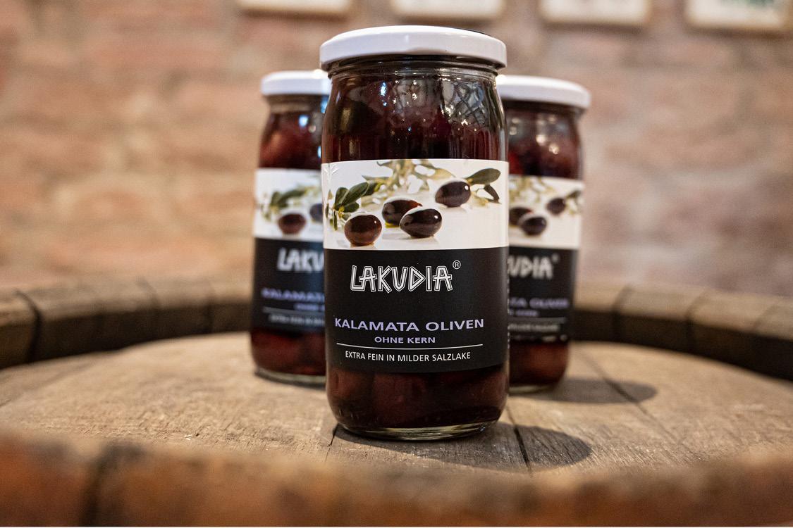 -Ohne Kern- Lakudia Kalamata Oliven stammen ausschließlich aus dem Süden der Peloponnes. Sie sind am Baum gereift, handgeerntet und in milder Salzlake eingelegt. ATG 200 g